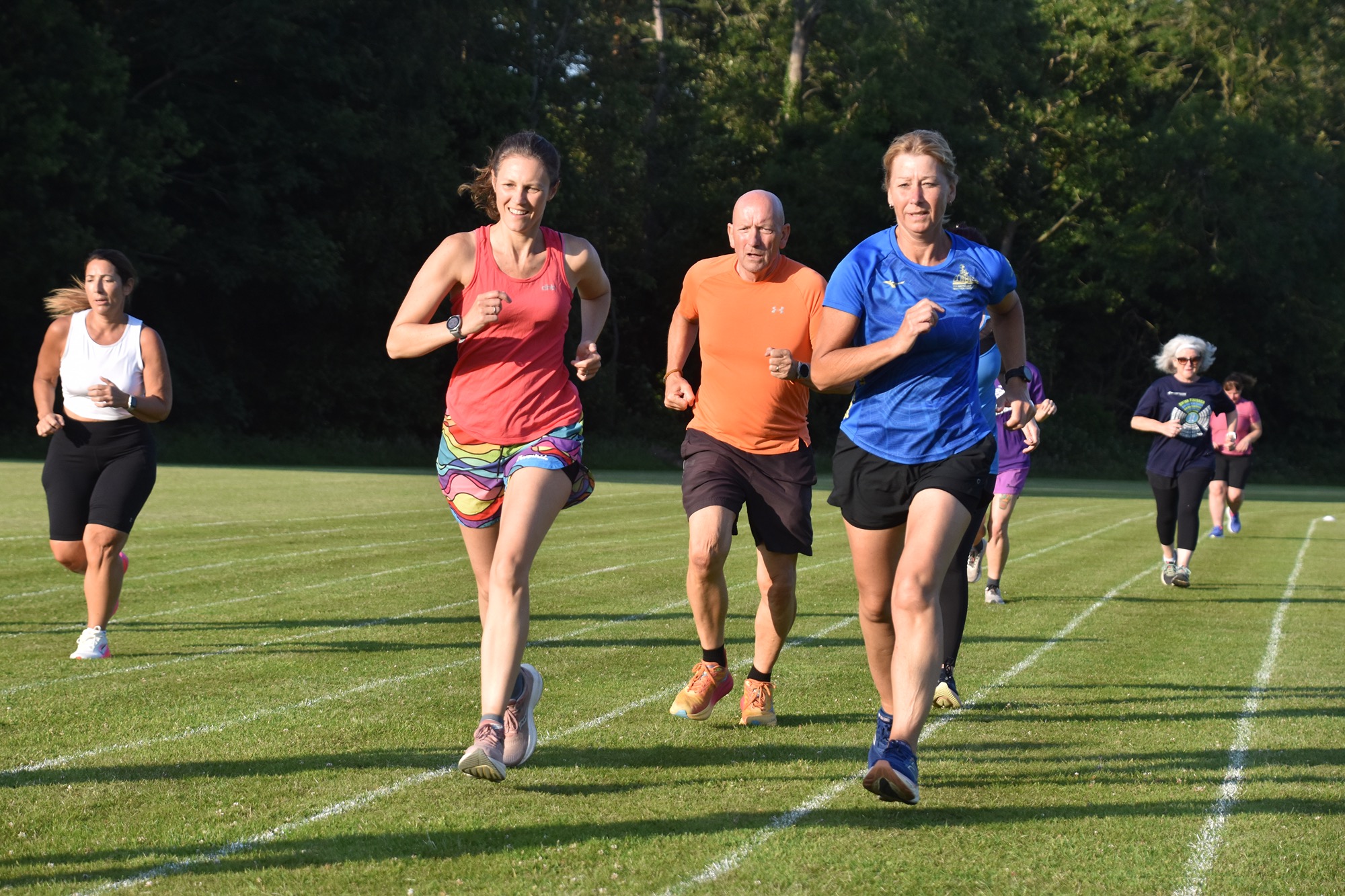 We begin the session with a 10-15 minute warm-up and drills, followed by a 20-25 minute interval session, and finish with a cool-down and stretching. These sessions are ideal for all levels, as you can train alongside others regardless of your pace.